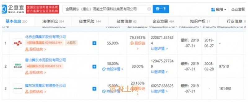 據企查查顯示,金隅冀東混凝土持有遼寧瑞豐混凝土有限公司100%股權。金隅集團(601992)(601992.SH)持有金隅冀東混凝土55.00%股權,冀東水泥(000401)(000401.SZ)持有金隅冀東混凝土30%股權。