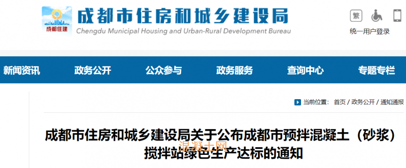 關于公布成都市預拌混凝土(砂漿)攪拌站綠色生產達標的通知