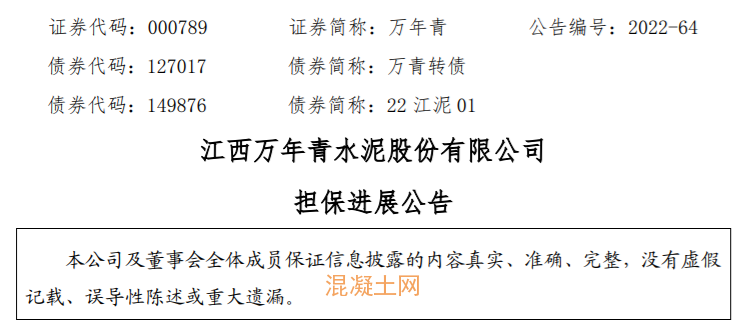 2022年10月25日公司子公司南昌萬年青商砼有限公司(以下簡稱“南昌 商砼”)向中國民生銀行股份有限公司南昌分行(以下簡稱“民生銀行南昌分行”) 借款貳仟壹佰萬元,借款合同編號為公流貸字第 ZX22000000409604號,本合同約定的借款期限為1年。公司為該借款提供擔保,擔保合同編號為:公高保字第NCWNQ202210號。