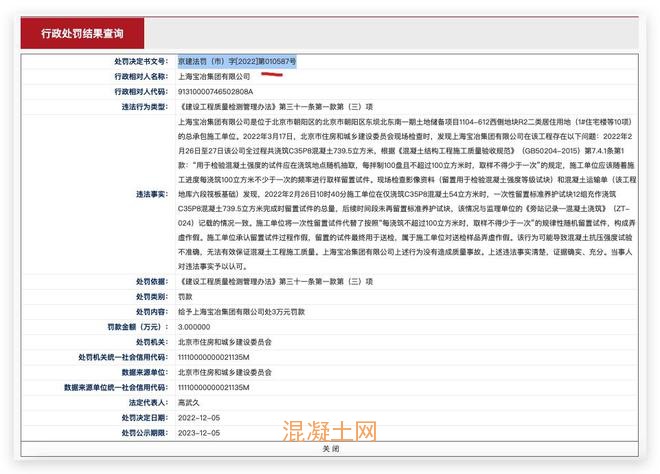 從北京市住房和城鄉(xiāng)建設(shè)委員會官網(wǎng)獲悉,北京市住房和城鄉(xiāng)建設(shè)委員會近期發(fā)布的處罰決定書文號“京建法罰(市)字[2022]第010587號”顯示,上海寶冶集團(tuán)有限公司作為施工單位承認(rèn)留置試件過程作假,留置的試件最終用于送檢,屬于施工單位對送檢樣品弄虛作假。該行為可能導(dǎo)致混凝土抗壓強(qiáng)度試驗不準(zhǔn)確,無法有效保證混凝土工程施工質(zhì)量,上海寶冶集團(tuán)有限公司上述行為沒有造成質(zhì)量事故,違反《建設(shè)工程質(zhì)量檢測管理辦法》第三十一條第一款第(三)項,被罰3萬元。
