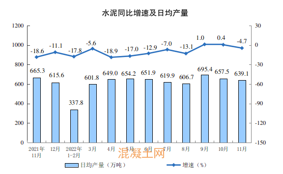 2022年11月份,水泥產(chǎn)量19172萬(wàn)噸,同比下降4.7%;1-11月份,水泥產(chǎn)量195010萬(wàn)噸,同比下降10.8%。