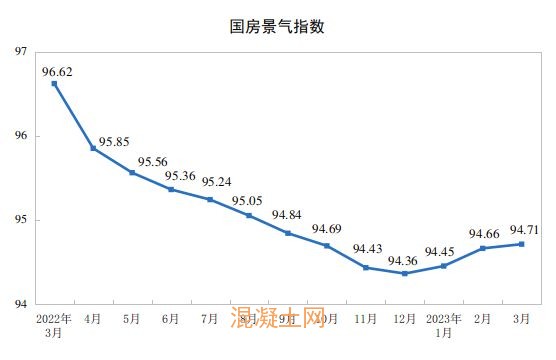 3月份,房地產開發景氣指數(簡稱“國房景氣指數”)為94.71。