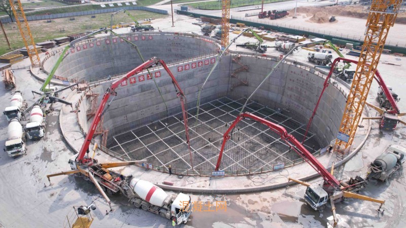 北錨碇填芯施工共分為8次澆筑完成,本次為第5次澆筑,且為目前澆筑量最大的一次,共計澆筑混凝土約15000立方米,采用C20混凝土一次性澆筑完成,相當于填滿6個標準游泳池,同時也創造了46小時完成約15000立方米混凝土澆筑速度,打破了燕磯長江大橋項目混凝土連續澆筑的紀錄。施工現場6臺天泵源源不斷地將混凝土注入北錨碇后倉“鋼鐵叢林”內。