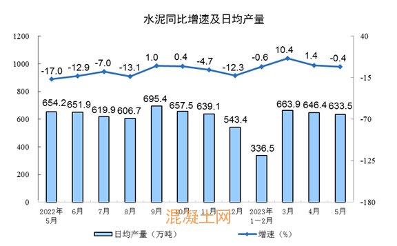 1-5月份全國水泥產量7.71億噸,同比增長1.9%。5月份,全國單月水泥產量1.96億噸,同比下降0.4%。