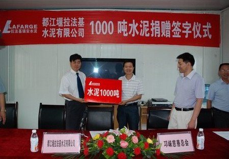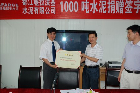 在捐贈(zèng)儀式上,王鐵國(guó)介紹道,此次捐贈(zèng)并不是拉法基瑞安第一次捐贈(zèng)災(zāi)區(qū)人民。在5·12汶川大地震的第三天,拉法基瑞安已經(jīng)向四川都江堰市和綿陽(yáng)市分別捐贈(zèng)了1000萬(wàn)和500萬(wàn)人民幣。拉法基瑞安致力于承擔(dān)企業(yè)社會(huì)責(zé)任,此后將時(shí)刻關(guān)注災(zāi)區(qū)人民的動(dòng)向,幫助他們盡早恢復(fù)正常的生產(chǎn)生活。