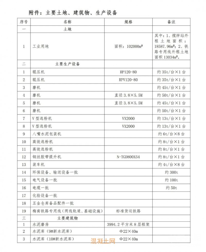 本項目為整體出售梅州市梅縣區恒發建材有限公司全部資產,包括土地、廠房和料庫等建構筑物,生產設備、設施和其相關備品配件,以及鐵路專用線(兩線軌道和相關基礎設施)等主要輔助性物資。本項目將在“塔牌招標平臺”、物供部郵箱和密封函同時公開進行招標。招標標的物明細詳見但可能不限于文末附件清單。