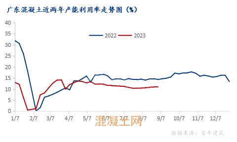 截止到8.30日,本期混凝土產能利用率10.99%,較上期提升0.02個百分點,繼續延續前面小幅提升的趨勢,但是本期增幅減少,據反饋本周受臺風天氣影響,廣東部分地區出現雷雨大風或暴雨預警信號,部分地區有停工的情況,加上一直存在的資金問題,廣東混凝土行情是否能夠轉好,產能利用率是否能夠繼續維持小幅提升,也變得很難預測。