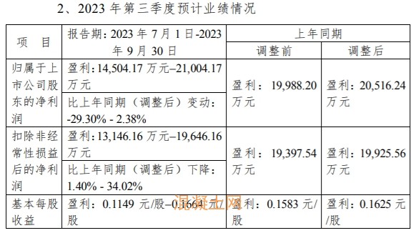 報(bào)告中顯示,截止于2023年9月30日,歸屬于上市公司股東的凈利潤盈利了31000萬元-37500萬元,比上年同期下降了36.14%-47.21%;中建西部建設(shè)第三季度預(yù)計(jì)歸屬于上市公司股東的凈利潤有14504.17萬元–21004.17萬元,比上年同期變動(dòng)了-29.30%-2.38%。報(bào)告期內(nèi),公司受宏觀環(huán)境影響,競爭壓力增大,主要產(chǎn)品銷售量和價(jià)格同比下降,預(yù)計(jì)銷售收入、凈利潤較上年同比下降。