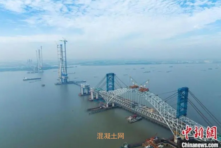圖為張靖皋長江大橋施工現場。中國交建供圖