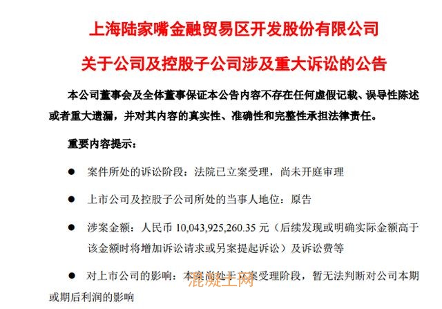 基于上述背景,陸家嘴的主要訴訟請求如下: