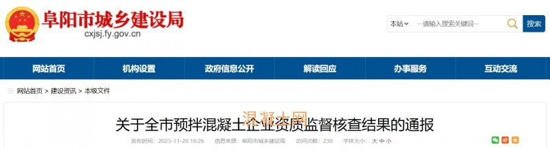 根據(jù)《阜陽市工程運(yùn)輸車輛專項(xiàng)整治工作方案》部署,阜陽市城鄉(xiāng)建設(shè)局于2023年10月11日起,在全市范圍內(nèi)開展了預(yù)拌混凝土專業(yè)承包企業(yè)資質(zhì)監(jiān)督核查,現(xiàn)將核查結(jié)果通報(bào)如下。