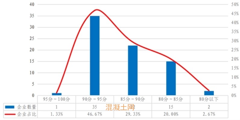 圖1 三季度預拌混凝土企業平均得分區間情況
