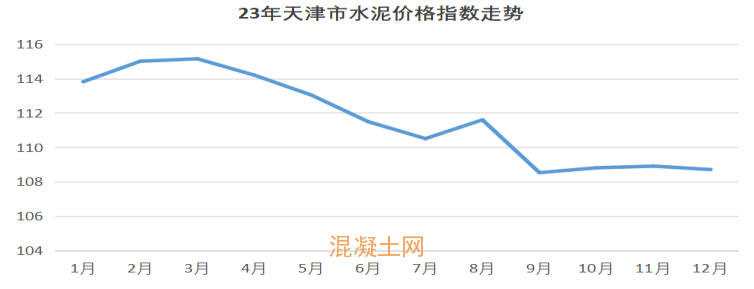 全國混凝土價格全年整體呈現下滑趨勢,12月份初有輕微反彈跡象,隨后持續下降,年末較年初價格降幅達10%左右。天津市混凝土市場2023年開年價格疲軟,2-4月份市場需求較小,價格基本維持穩定,5月份大面積開工后競爭加劇,價格持續下滑。