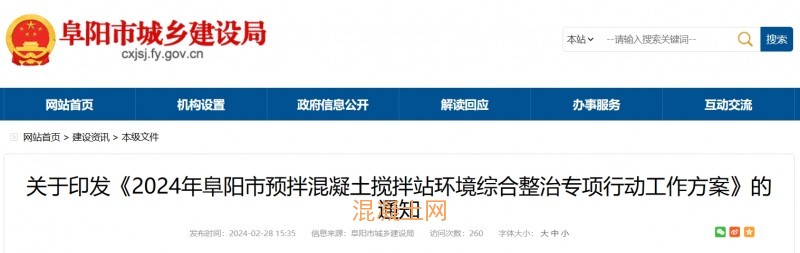 關于印發(fā)《2024年阜陽市預拌混凝土攪拌站環(huán)境綜合整治專項行動工作方案》的通知