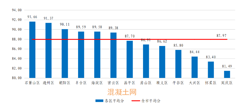 1.現場評估得分情況。四季度評估現場檢查全市平均得分為87.97分。其中,石景山區(平均分91.66分)、通州區(平均分91.37分)和朝陽區(平均分90.11分)企業平均分較高,延慶區(平均分81.49分)、懷柔區(平均分83.40分)和大興區(平均分84.44分)企業平均分較低。各區企業現場檢查平均分見圖1。