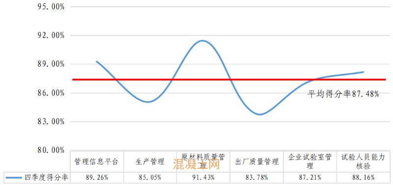 四季度評估過程中共抽檢樣品644組,得分率為98.91%,包括砂石骨料184組、試塊及拌合物460組。其中抽檢砂子92組,得分率為100%;抽檢石子92組,得分率為97.83%;抽檢試塊及拌合物460組,得分率為98.91%。