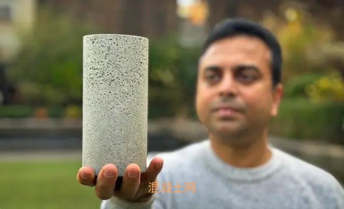 Chamila Gunasekara 博士手持低碳混凝土樣品邁克爾-昆,皇家墨爾本理工大學