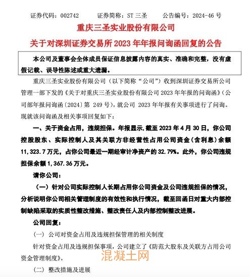 日前,ST三圣對深圳證券交易所2023年年報問詢函進行了回復。ST三圣方面稱:“公司近年多次發生實際控制人非經營性占用公司資金的情況,且截至期末資金占用仍未解決,公司由于債務違約被訴訟,已基本喪失融資能力。公司存在債務違約并因訴訟導致銀行賬戶和資產凍結等,對公司正常生產經營也產生了不良影響。目前,公司希望通過破產重整的方式,引進投資者和資金,系統性解決公司的債務問題。”
