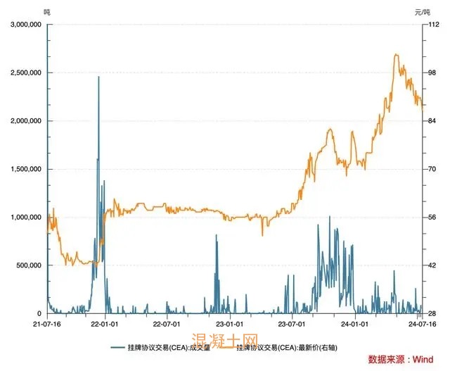 據上海環境能源交易所數據,2021年至2023年,CEA平均收盤價分別為46.6元/噸、58.07元/噸、64.01元/噸。截至7月16日,2024年CEA平均收盤價報86.88元/噸,較去年均價同比上漲超過35%。