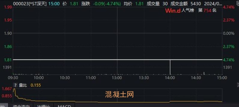 7月23日,*ST深天再度一字板跌停。截至晚間收盤,公司股價報1.81元/股,跌幅為4.74%,市值僅剩2.51億元。提前鎖定A股“市值退市第一股”。