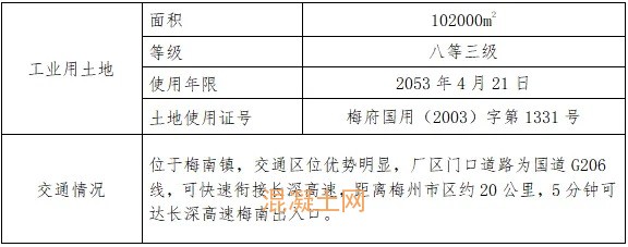 一、梅州市梅縣區恒發建材有限公司位于廣東省梅州市梅縣區梅南鎮耕滂村。工業用地面積102000m2,地上附著物有鋼結構雨棚、熟料儲庫雨棚、兩棟宿舍樓、廠辦辦公樓、食堂大樓、生產區化驗樓、五金倉庫、機修房、業務樓、地秤房、總變電站、火車專線及站臺等。
