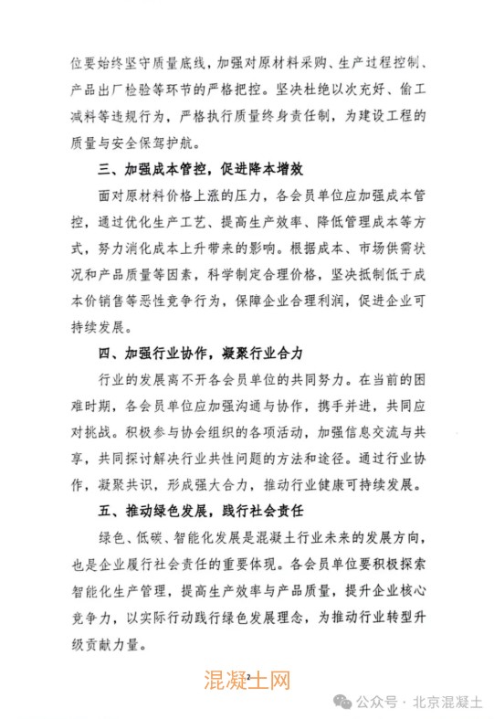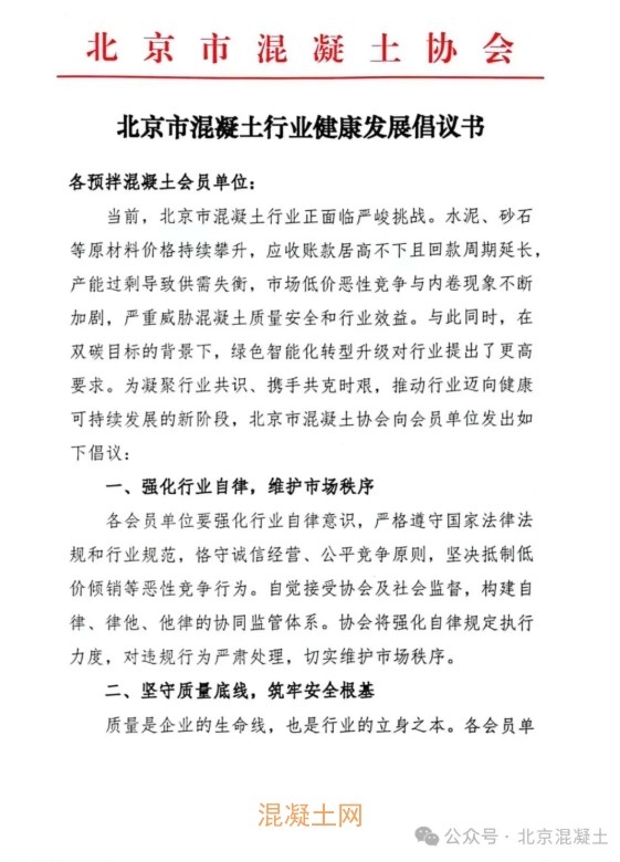 北京市混凝土行業健康發展倡議書