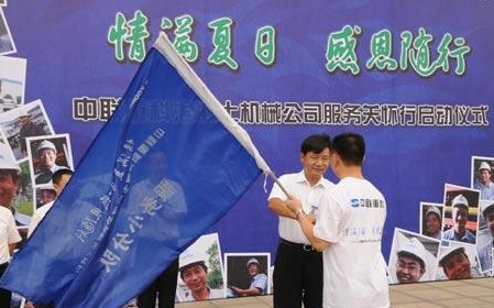 隨后,張建國總經(jīng)理鄭重的將服務(wù)旗幟送到服務(wù)分隊隊長馬英武的手中,隨著張總發(fā)布服務(wù)分隊出發(fā)的命令,數(shù)輛中聯(lián)售后服務(wù)車徐徐駛出,載著中聯(lián)對客戶的感恩和真誠,奔赴全國12個省的各個服務(wù)區(qū)域……