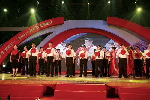 相比晚會上的娛樂明星們,當晚最耀眼的明星則是胸帶大紅花、笑容燦爛的三一研發工程師們。