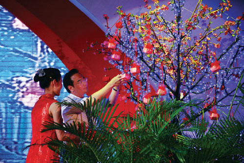 最后,易小剛提議,全場起立,對許愿樹許下自己的心愿。在舒緩的音樂聲中,大家默默祝愿三一的明天更美好。