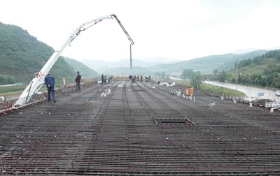 中國鐵建中鐵十三局集團一公司丹海項目部的建設者,經過23個小時連續冒雨澆注作業,丹海高速公路上“三跨”大(孤山)--盤(錦)線之一的,荒溝公公分離式立交橋左幅預應力混凝土連續箱梁于8月27日凌晨6時率先澆注成功,既7月22日豐源河大橋率先在全線現澆后,又一次實現了全線第一個公公分離式立交橋現澆施工的目標,為中鐵十三局爭得了榮譽。