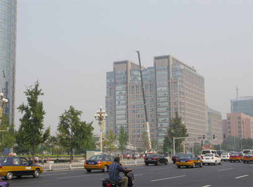 吊車到達北京飯店時,原來擔心的地下承重沒有問題,吊車很順利的停放到位并裝備好了配重,大家都舒了口氣。
