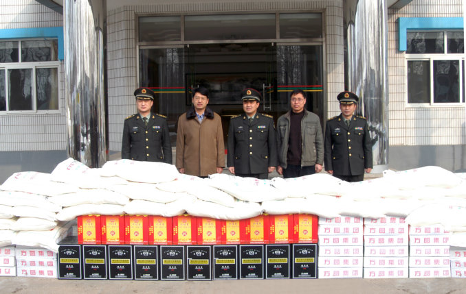 2月6日上午,集團(tuán)副總經(jīng)理劉長城攜帶慰問品首先乘車來到了柳樹莊軍營駐軍71613部隊,親切慰問了那里的子弟兵,代表集團(tuán)公司全體員工向駐軍官兵送去了節(jié)日的問候和祝福,受到了駐地官兵的熱烈歡迎。