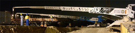 由于這沉箱內還設有模板用來澆筑內部的支撐墻,AL-TAWI還使用了一臺泵車停在沉箱的另一端和皮帶機同時進行布料,這樣就能使得澆筑的混凝土在模板兩端的分布比較均勻,防止了模板的移位。由于皮帶車的出色表現,AL-TAWI隨后又采購了一臺TB130,泵車操作手也很高興看到這臺新設備的到來,因為這種纖維混凝土確實是不容易泵送。