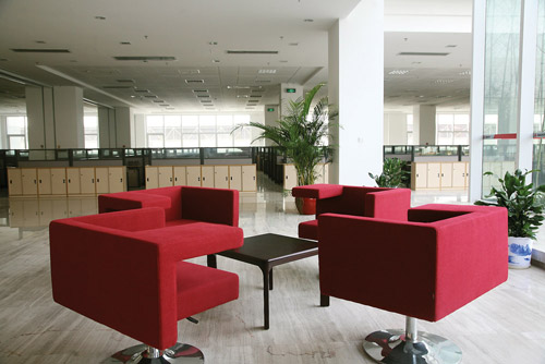 在辦公區的布置中,“人性化”這一主題貫穿在每一個細節中。由于屆時將有上千人在這里辦公,為了巧妙布置,使得這里“繁而通透”,共有5個設在辦公中心區域的會議室被拆除,并先后設立了2條直貫東西的大通道和3條南北通道,站在通道口一眼望過去,只見一排排辦公桌整齊劃一,如士兵一般列隊而立,通道的盡頭,遠遠地可見到花園里提拔的松柏和輕拂的細竹。另外,辦公區采用的是從天花板反射的間接光源,光線更柔和,辦公時,光線對眼睛的傷害會被降到最低。而一盆盆綠意盎然的植物,也成為辦公室一角充滿自在生機的獨立世界。