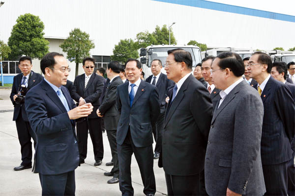 在麓谷工業園的參觀過程中,當了解到中聯重科由當年的一個科研院所成長至跨國運營的國際化企業時,江丙坤董事長對公司的發展連稱“了不起!”在產品展示坪,一臺臺重型機械一字排開,在聽取詹純新董事長的詳細講解后,江丙坤董事長對中聯重科的生產能力表示贊嘆,并歡迎詹純新董事長等公司高管有機會前往臺灣參觀考察。