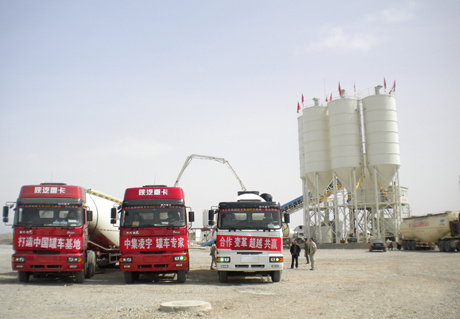 2010年4月2日,三臺(tái)專用車從洛陽中集凌宇公司出發(fā)奔赴新疆市場(chǎng),開始了為期15天的新疆巡展之旅。此次巡展由洛陽中集凌宇公司與陜汽集團(tuán)聯(lián)合舉辦,三臺(tái)展車分別為:6*4、12方水泥攪拌運(yùn)輸車、8*4、43方粉粒物料運(yùn)輸車和 71方半掛車。