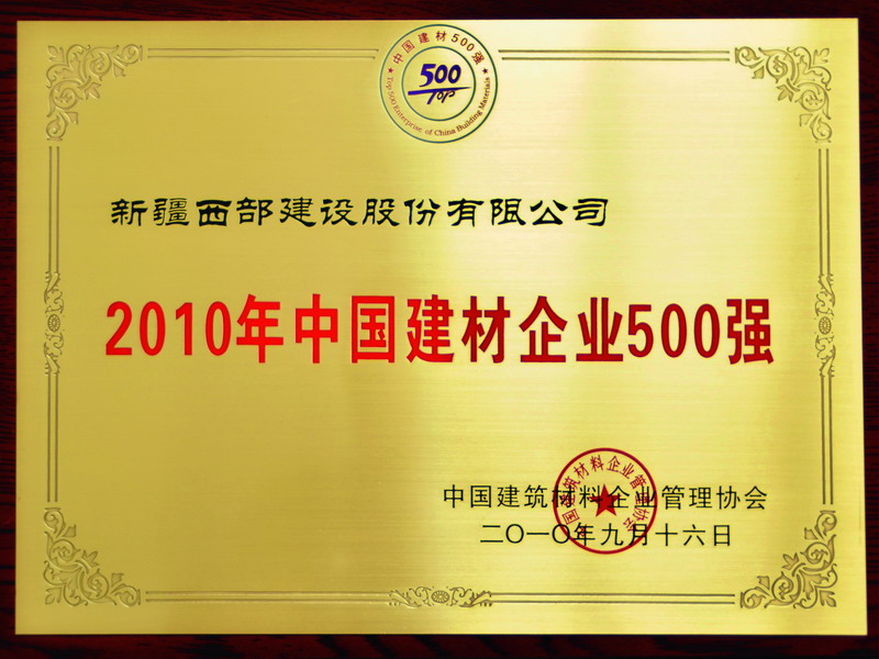 9月16日,2010年度中國建材500強發布會在北京隆重舉行,新疆西部建設股份有限公司榜上有名,并同時躋身2010年中國建材行業最具成長性企業100強。