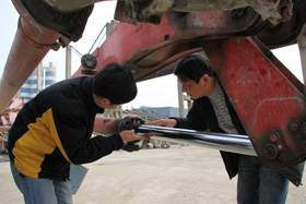 江陰市華鼎混凝土有限公司自2003年投產(chǎn)至今,先后從普邁訂購4輛混凝土泵車,該公司生產(chǎn)部沈建相經(jīng)理對記者說,“混凝土施工,連續(xù)澆筑時對泵車的要求很高。公司曾經(jīng)一度租賃泵車,但事故時有發(fā)生,對公司造成了較大的經(jīng)濟損失。自從公司購買了普邁的泵車后,多年以來公司承包的多項施工工程中連續(xù)工作時沒有發(fā)生任何事故。”沈經(jīng)理指著正在接受體檢的泵車說,“就這臺泵車,2010年中累計澆筑了1793小時,總共12萬方混凝土。在連續(xù)澆筑的過程中沒有出現(xiàn)過任何問題,與租賃的泵車相比,不僅節(jié)省了時間,而且一次性澆筑更為施工的品質(zhì)提供了保障。”