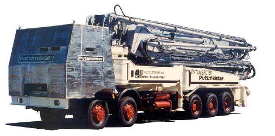 核電站事故發生后,前蘇聯外貿部立即與普茨邁斯特簽署了派遣10臺帶有大型5節臂的M 52-5混凝土泵車,這些在當時水平泵送距離最大的泵車配有“特別設備”。泵車上的輔助設備包括每臺機器的左邊后支腿和臂架頂端裝有兩個可調節的視頻攝像頭。這是用來遠程觀察料斗上料情況以及實際澆注工作進展的。而且,這些混凝土泵車還要求可以在800m以外的距離通過無線電控制進行遠程操作。另外,在駕駛室里的原先的乘客座位上已經安裝上了一臺監測器,從而在駕駛室里也能夠控制及觀察到機器。