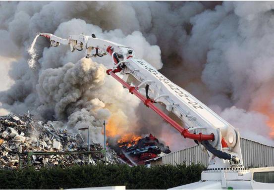 這臺由普茨邁斯特制造的垂直高度可達58米帶有5節臂的M58-5泵車對Fukushima(福島)核反應堆已損壞的冷卻罩進行冷卻,其具有能夠在已損毀建筑的上方遠距離精準地澆注冷卻水的優點。