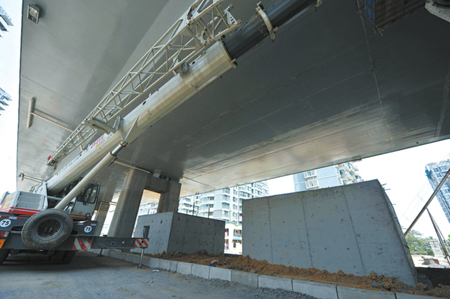 據現場施工人員介紹,現在濱湖試驗段整條線上只有4個人在施工,主要是最后的掃尾工程,對細節問題進行修理。很快掃尾結束后,試驗段就要全封閉起來,等到一號線鋪軌時,才能再次開工。