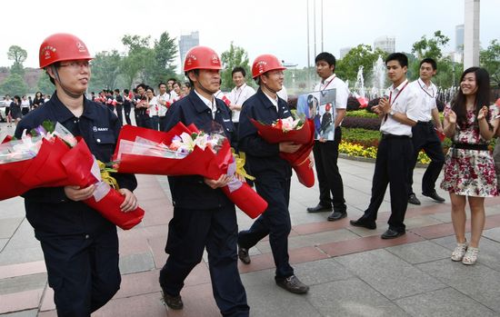 5月10日,三一重工馳援日本福島核泄露事故的工程師戴達安、周新安和彭延壽圓滿完成任務回到長沙,受到熱烈歡迎。