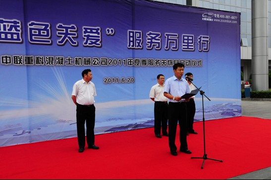 張建國總經理在啟動儀式上作了動員報告,他表示,多年來,中聯重科秉持用戶至上的理念,通過建立健全的售后服務體系,在用戶最需要幫助的時候提供便捷、優質的服務。此次服務活動,正是中聯重科混凝土機械公司真情為用戶的延續,對于增進與用戶的了解和合作、擴大企業影響等方面將具有非常重要的意義。