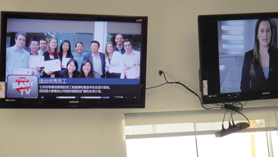 7月1日,三一巴西自創電視頻道在圣何塞辦公室餐廳正式開播,這個由三一巴西總經辦、市場部及人力資源部共同創辦的電視平臺在員工午餐時間以中葡雙語播放,旨在向三一巴西全體員工介紹公司時事新聞以及與公司相關的巴西國內外大事。