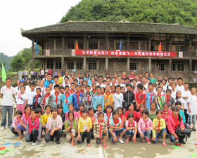 中聯工作人員與下寺小學學生貴州青巖古鎮前合影
