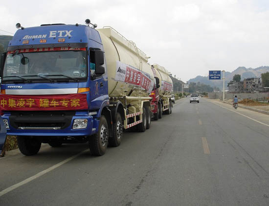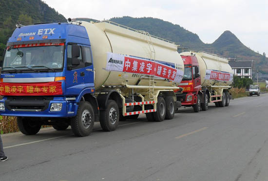 初秋的貴州秋高氣爽,金風(fēng)颯颯。本著更深擴(kuò)大凌宇品牌在貴州市場的覆蓋率,兩臺中集凌宇44方散裝水泥運輸車踏上了“遵義站”的旅程。