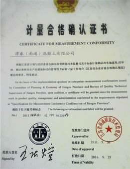 據悉,根據江蘇省計劃與經濟委員會和江蘇省質量技術監(jiān)督局關于企業(yè)計量確認的實施意見,經審核,津豪公司在產品質量和經營管理等方面的計量工作均符合《江蘇省企業(yè)計量合格確認規(guī)范》規(guī)定的要求,獲得了“計量合格確認證書”。該證書有效期至2016年9月29日。