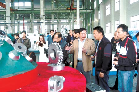 會(huì)談結(jié)束后,各位來(lái)賓在集團(tuán)副總經(jīng)理劉忠的陪同下乘車(chē)參觀了集團(tuán)的各生產(chǎn)分廠和生產(chǎn)車(chē)間,并下車(chē)參觀了建設(shè)機(jī)械二廠、起重機(jī)械分廠,詳細(xì)了解了產(chǎn)品的生產(chǎn)制作工藝和生產(chǎn)流程。另外,還參觀了煙臺(tái)大韓美味香糧油有限公司、煙臺(tái)方圓大韓制粉有限公司和煙臺(tái)金鼎葡萄酒業(yè)有限公司三大新興產(chǎn)業(yè),并登上方圓誠(chéng)信金鼎,參觀了金鼎博物館內(nèi)集團(tuán)的發(fā)展歷史圖片資料,了解了集團(tuán)的發(fā)展史和富有特色的企業(yè)文化。
