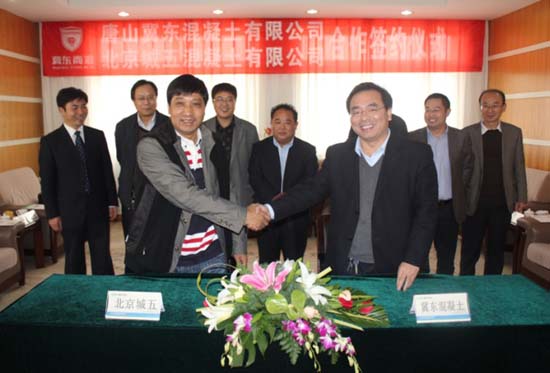 10月28日,唐山冀東混凝土有限公司與北京城五混凝土有限公司股東岳曉明、北京寶路通達粉煤灰有限公司授權代表周寶華,在集團公司外賓招待室,簽訂了北京城五項目股權收購協議。冀東發展集團董事長張增光,冀東發展集團總經理王曉華,股份公司副總經理、冀東混凝土公司總經理李占軍,冀東混凝土公司副總經理徐高金,高級顧問王建輝,北京總公司副總經理安樹好等參加了此次簽約儀式。