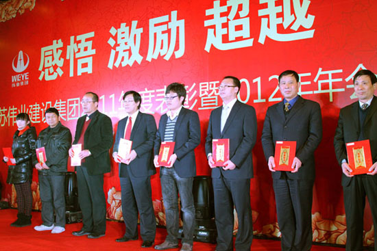 2012年2月2日-3日,江蘇偉業(yè)建設(shè)集團(tuán)2011年度表彰暨2012年年會(huì)在常州蘭新國(guó)際大酒店隆重召開。本次會(huì)議共分為四大部分,分別為:集團(tuán)中高層管理干部座談會(huì)、員工培訓(xùn)、2011年年度總結(jié)表彰大會(huì)、2012年新春聯(lián)歡會(huì)。